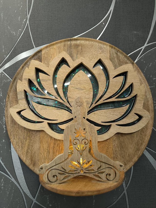Fleur de lotus/bouddha diamètre 37cm, possible avec bougeoir. Résine époxy